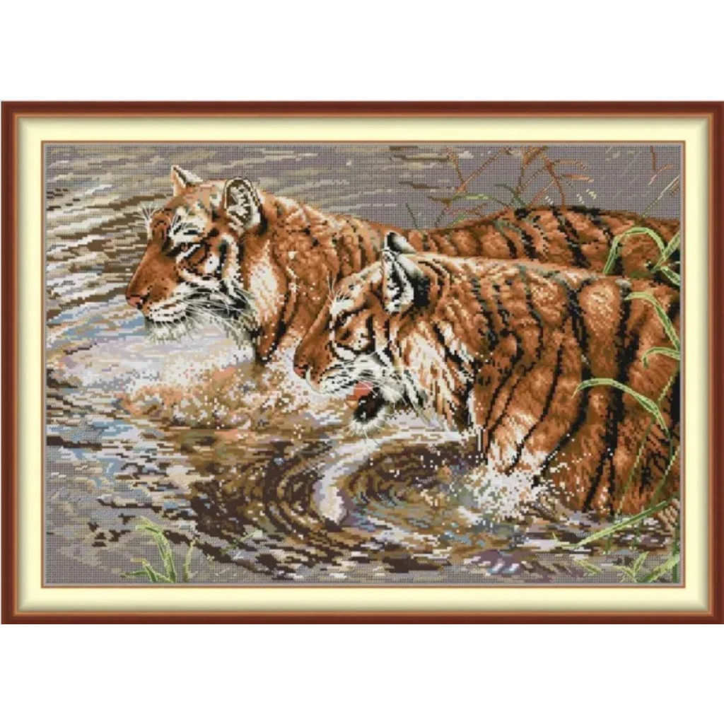 DB140JS Joy Sunday Набір для вишивки друкованим хрестиком - Пара тигрів 56х41 см, Aida 14 ct (схема на канві)