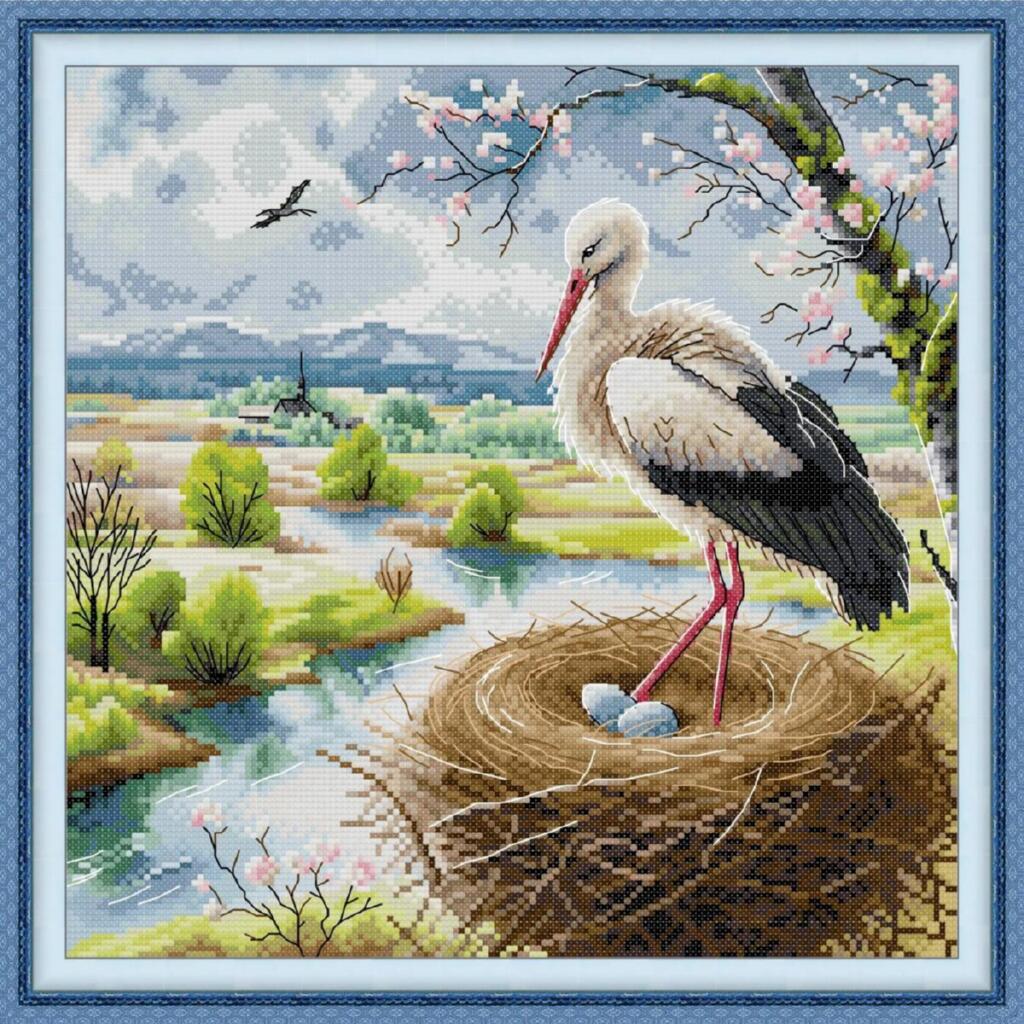 DB153JS Joy Sunday Набір для вишивки друкованим хрестиком - Лелека 34x34 см, Aida14