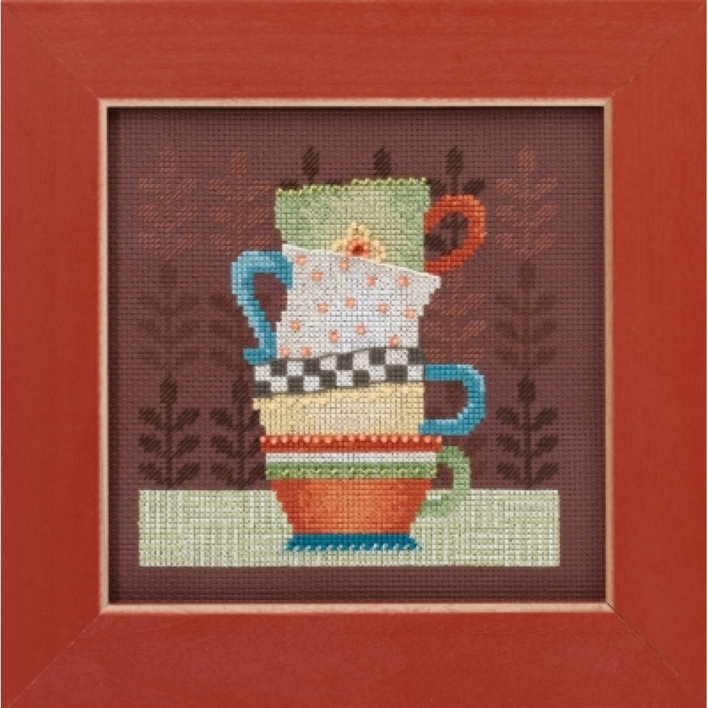 DM301615 Mill Hill Набір для вишивки рахунковим хрестиком + бісером - Кавові чашки Coffee Cups 12x12 см, Aida 16