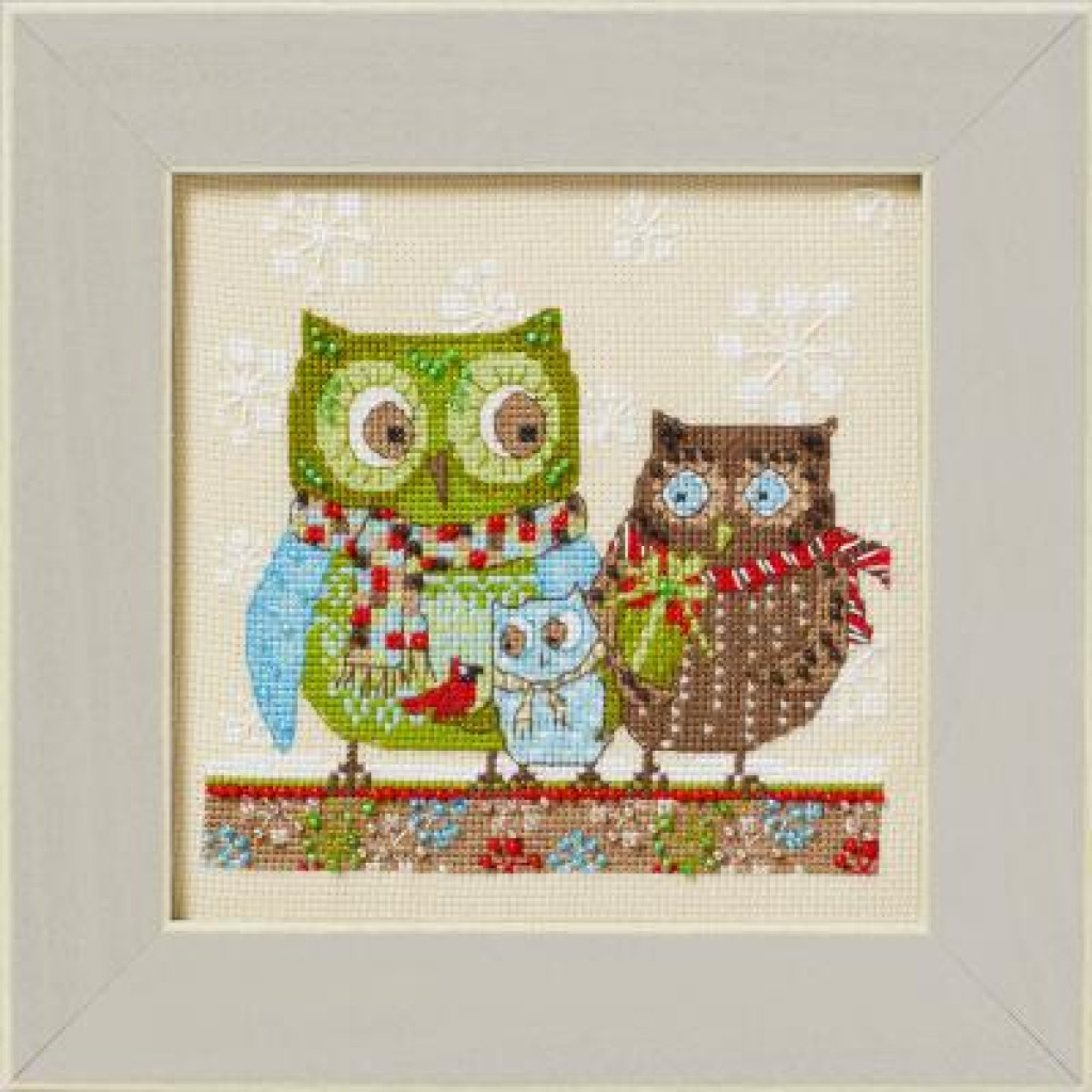 DM302414 Mill Hill Набір для вишивки рахунковим хрестиком + бісером - Зимові сови Winter Owls 13x13 см, Aida 16 ct