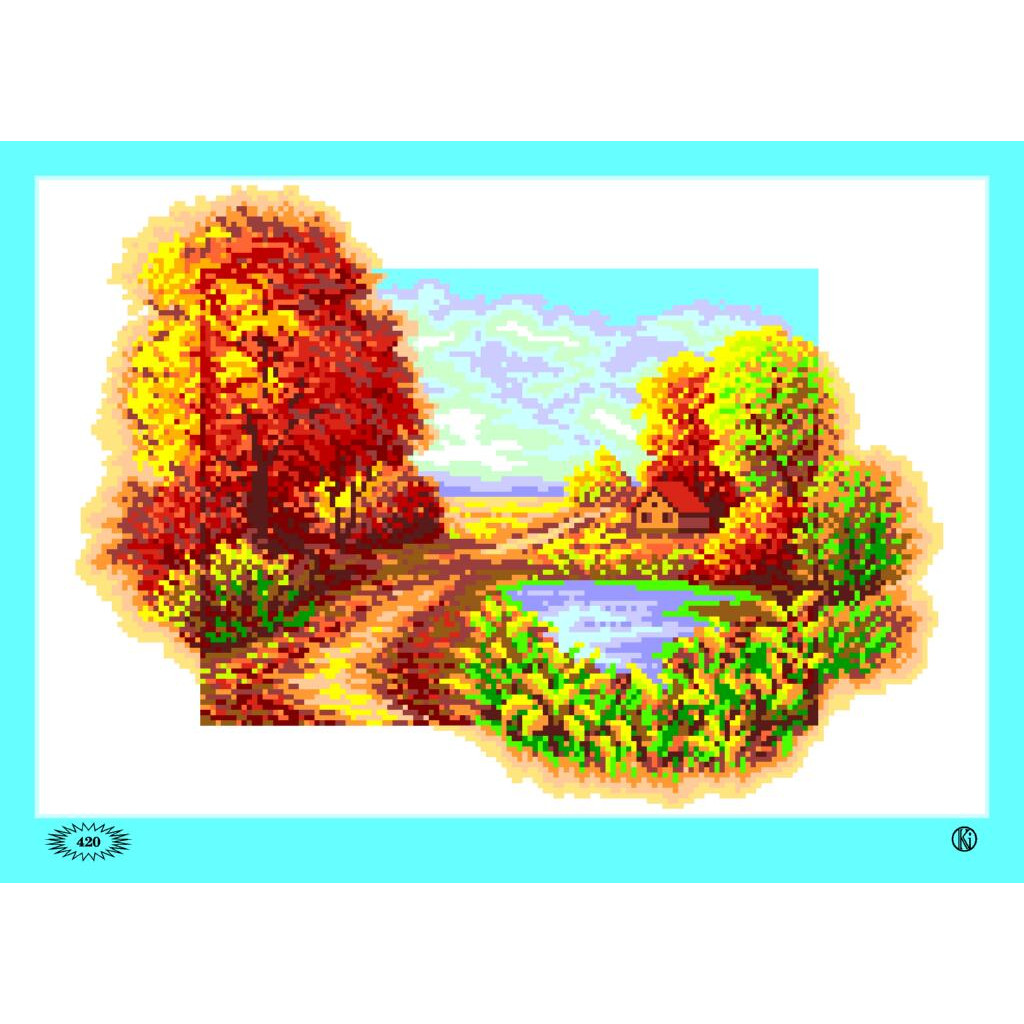 ДН420 Інстинкт вишивання Набір для вишивки друкованим хрестиком - Осінній пейзаж 21x30 см, Aida 16 (схема на канві)