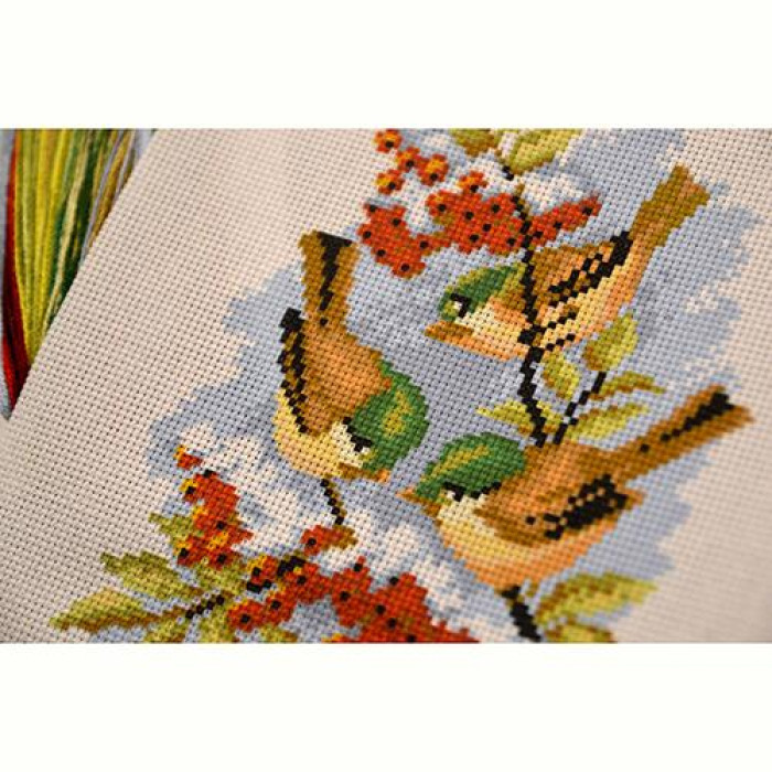 ДН529 Інстинкт вишивання Набір для вишивки друкованим хрестиком - Пташки на калині 15x21 см, Aida 16 (схема на канві)