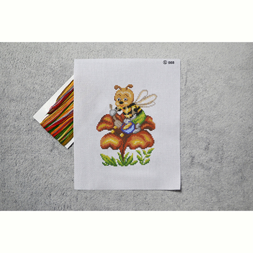 ДН568 Інстинкт вишивання Набір для вишивки друкованим хрестиком - Бджілка 15x21 см, Aida 16 (схема на канві)