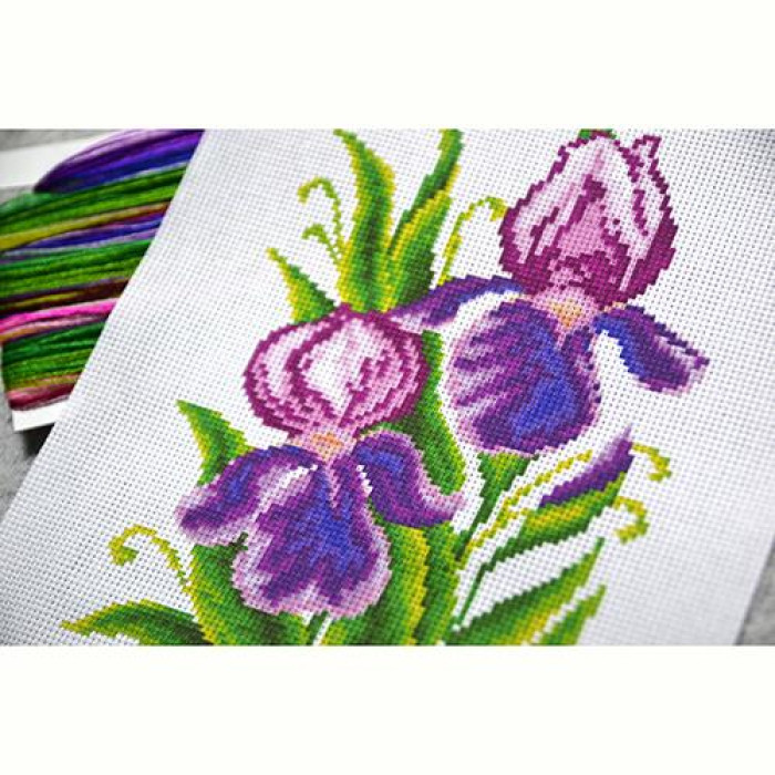 ДН577 Інстинкт вишивання Набір для вишивки друкованим хрестиком - Іриси 15x21 см, Aida 16 (схема на канві)