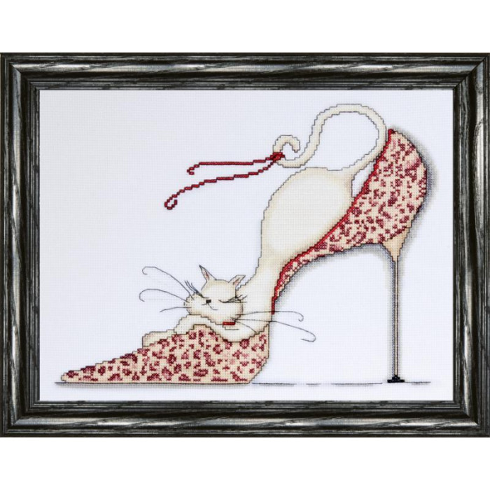 dw2553 Design Works Набір для вишивки рахунковим хрестиком - Кішка в лепардовой туфлі Leopard Shoe Kitty 32x25 см, Aida14