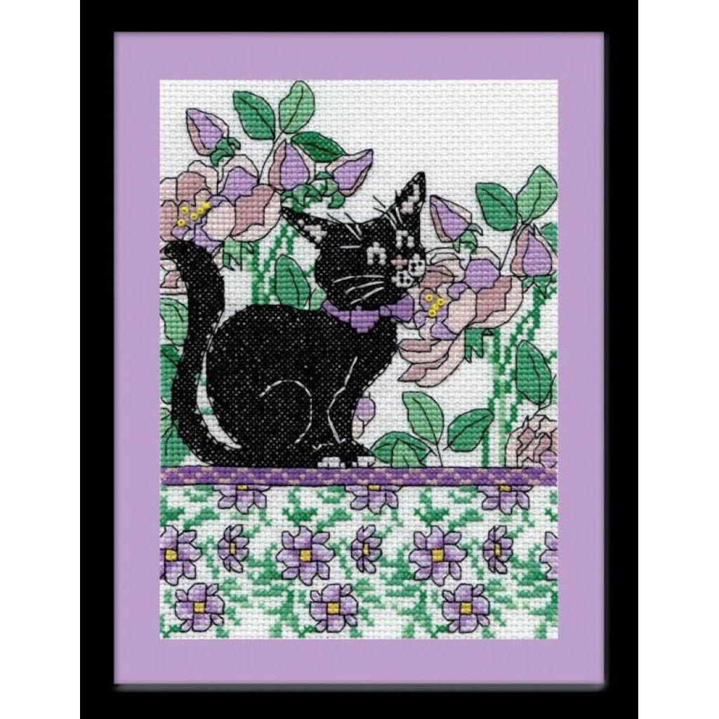 dw2805 Design Works Набір для вишивки рахунковим хрестиком - Lilac Floral Cat 13x18 см, Aida 14