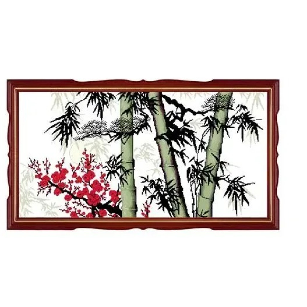 F003-1JS Joy Sunday Набір для вишивки друкованим хрестиком - Сосна, бамбук та слива 1 81х45 см, Aida 14 ct (схема на канві)