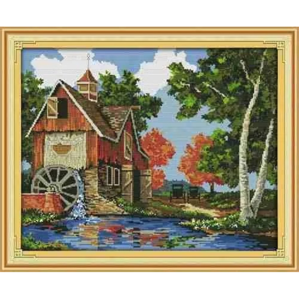 F530JS Joy Sunday Набір для вишивки друкованим хрестиком - Дерев'яний будиночок 2, 49х40 см, Aida 14 (схема на канві)
