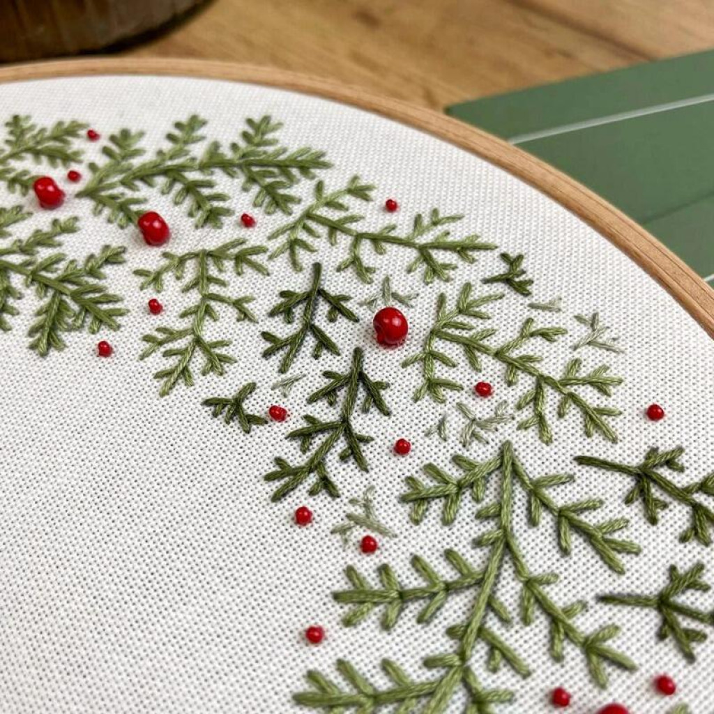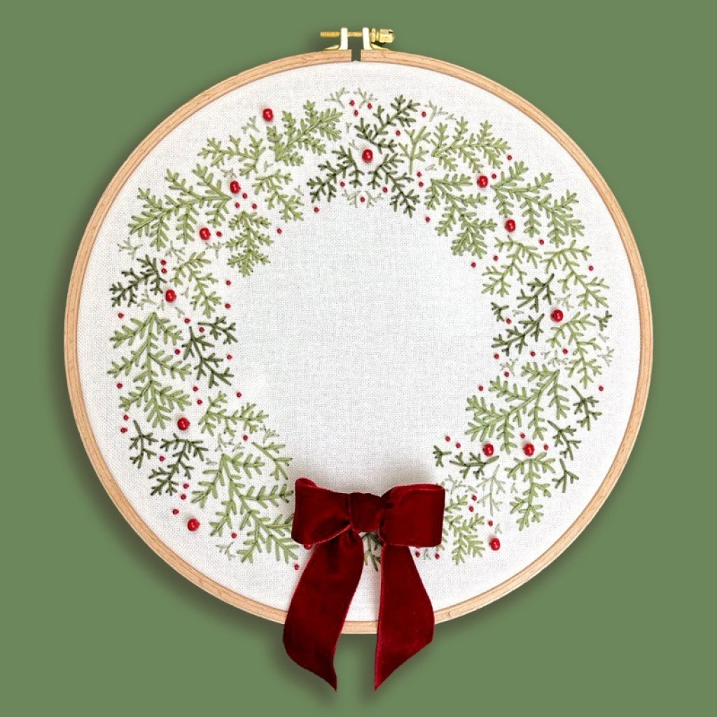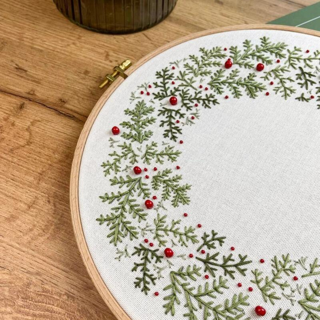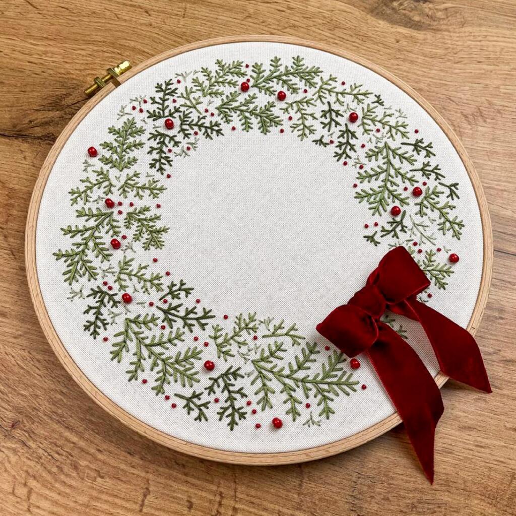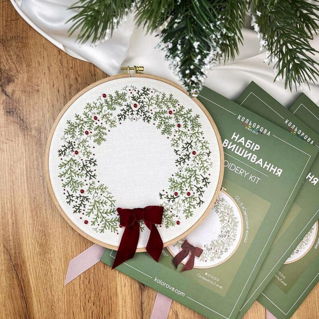 Комплект для вишивання гладдю Святковий вінок створений для виготовлення витонченого сезонного декору. На домотканому полотні вже нанесено малюнок, тож зручно одразу переходити до творчого процесу та акуратно відпрацьовувати гладь, додаючи виразні акценти бісером.