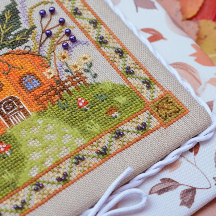 Техніка виконання: рахунковий хрестик, в дизайні присутні фрузлики та петлеві стібки (Lazy daizy).