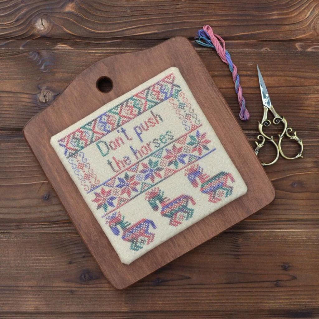 Цей дизайн увіковічує відому фразу, що стала символом українського духу. Коні - художнє осучаснення народних візерунків, у яких відчувається сила традиції. Орнаменти й напис утворюють гармонійний діалог між давниною та сьогоденням. Під час фінальної прес-конференції перед реваншем із Деніелом Дюбуа Олександр Усик несподівано звернувся до команди противника англійською: "Don't?push?the?horses", що буквально означає "Не женіть коней" (український еквівалент англомовної фрази "hold?your?horses" — "не поспішай").