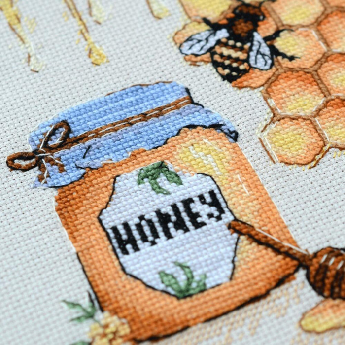 Техніка виконання: рахунковий хрестик, окрім хрестика присутній бекстіч, півхрест, фрузлик, 2 бленди.