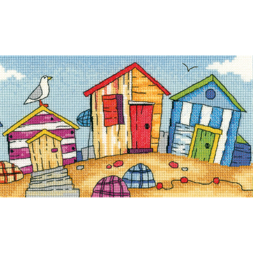 H1273 Heritage Crafts Набір для вишивки рахунковим хрестиком - Пляжні будиночки 20x11 см, Linda 27 ct
