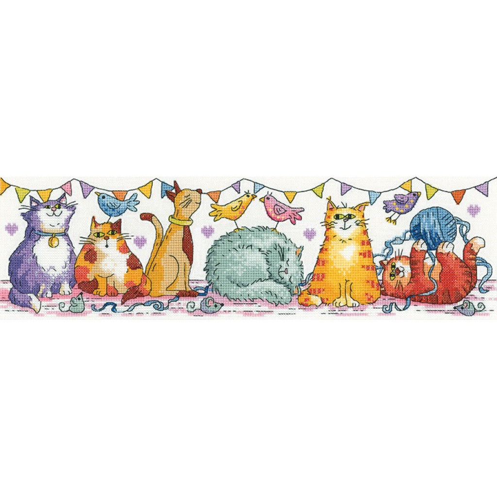 H1539 Heritage Crafts Набір для вишивки рахунковим хрестиком - Котяче шоу 37,5x10,5 см, Linda 27 ct