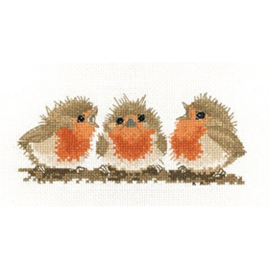 H1661 Heritage Crafts Набір для вишивки рахунковим хрестиком - Робіни з рюшками 17x7 см, Linda 27 ct
