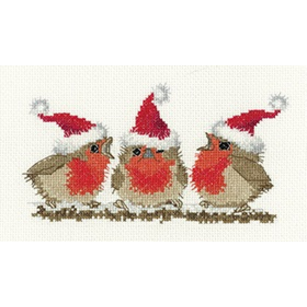 H1736 Heritage Crafts Набір для вишивки рахунковим хрестиком - Святкові робіни 18,5x10 см, Linda 27 ct