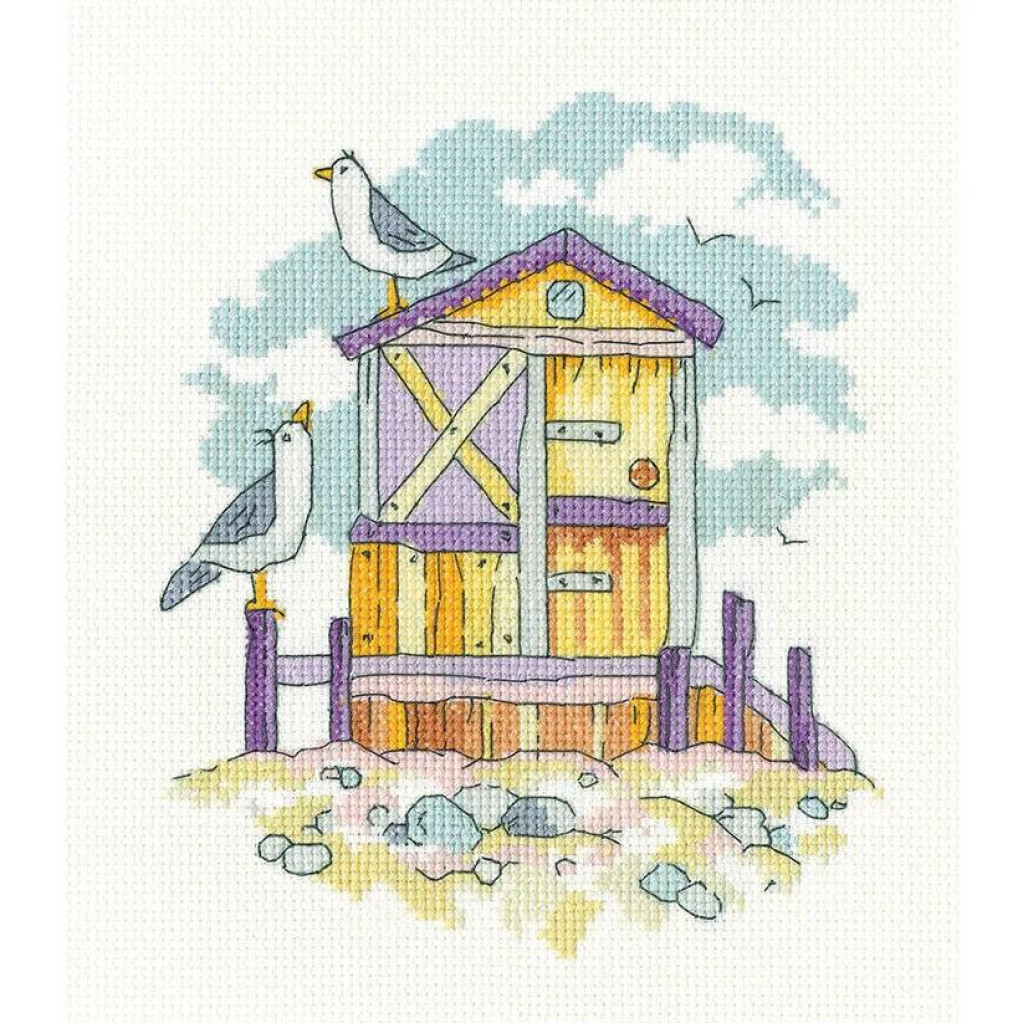 H1748 Heritage Crafts Набір для вишивки рахунковим хрестиком - Жовтий береговий будиночок 15x17 см, Linda 27 ct