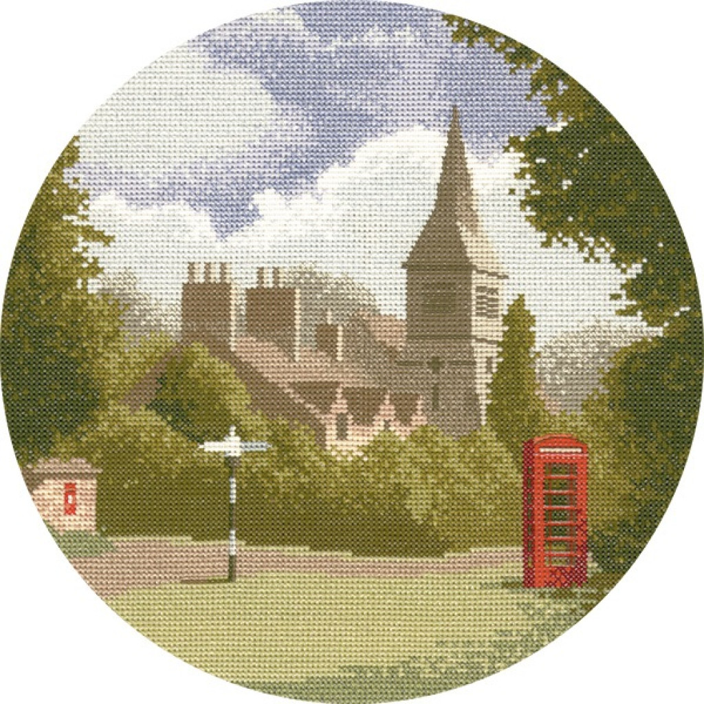 H342 Heritage Crafts Набір для вишивки рахунковим хрестиком - Зелене село 25,5x25,5 см, Linda 27 ct