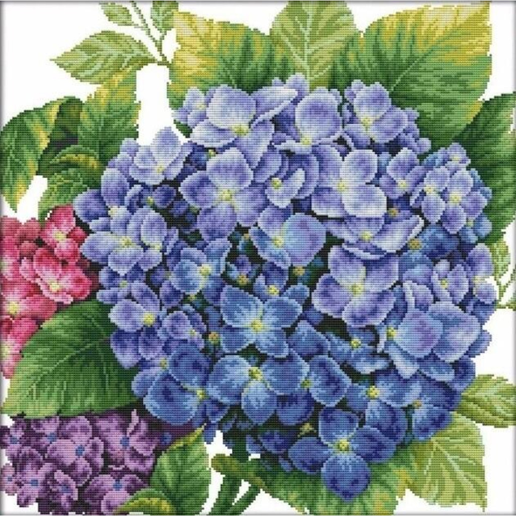 H417-3JS Joy Sunday Набір для вишивки друкованим хрестиком - Гортензія 3 48x48 см, Aida14