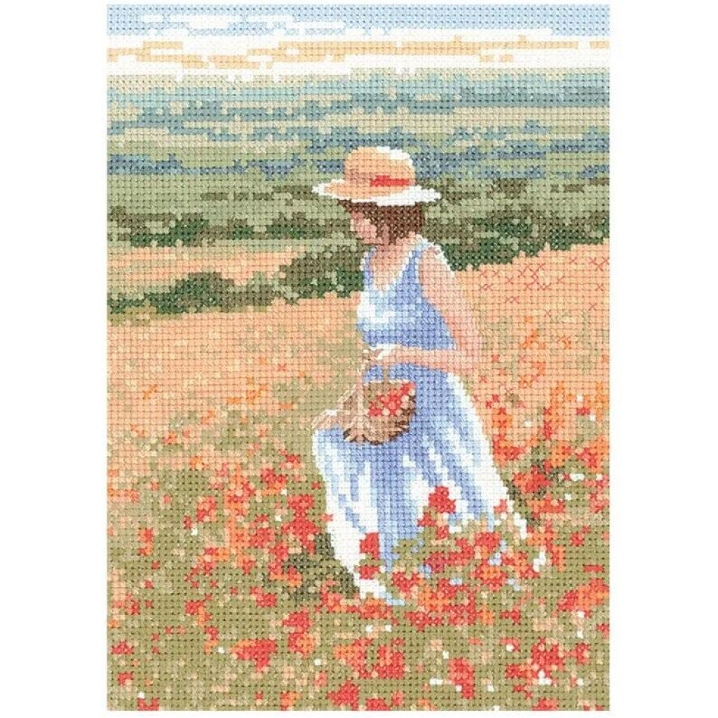 H649 Heritage Crafts Набір для вишивки рахунковим хрестиком - Поле маків 13,5x19 см, Linda 27 ct