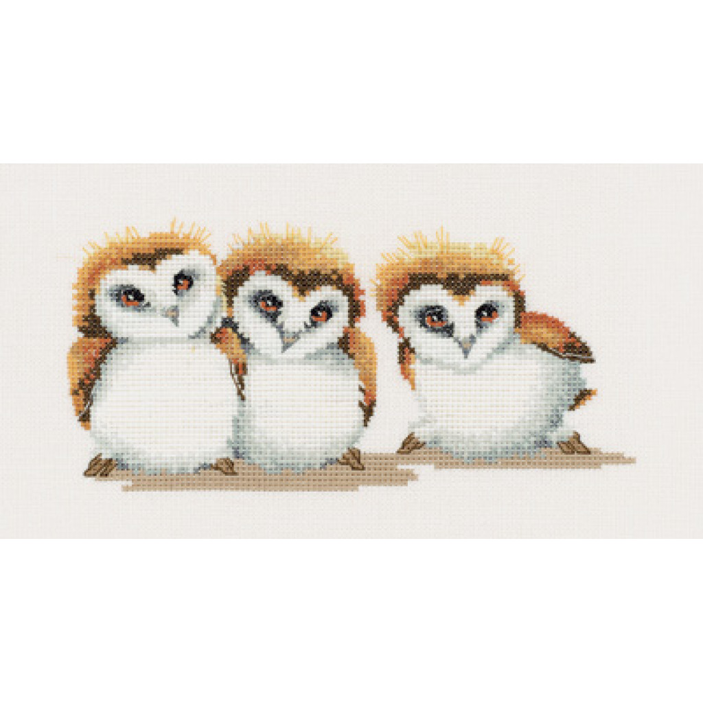H702 Heritage Crafts Набір для вишивки рахунковим хрестиком - Три маленькі совенята 19x9 см, Linda 27 ct
