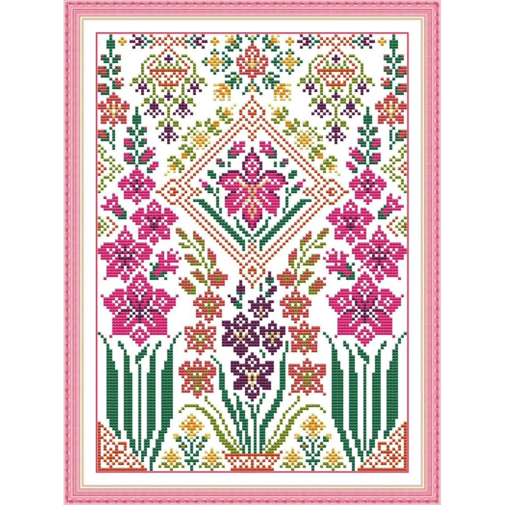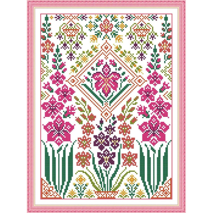 HA104JS Joy Sunday Набір для вишивки друкованим хрестиком - Вишиті квіти 27х35 см, Aida 14 ct (схема на канві)