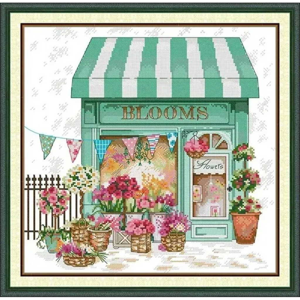 HA262JS Joy Sunday Набір для вишивки друкованим хрестиком - Квіткова лавка 37x38 см, Aida 14 ct (схема на канві)