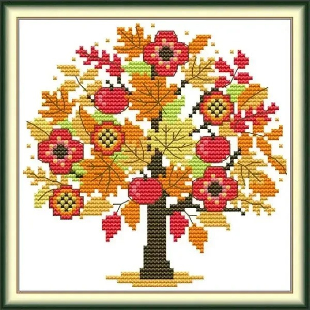 HA277JS Joy Sunday Набір для вишивки друкованим хрестиком - Дерево чотирьох пір року осінь 18x18 см, Aida 14 ct (схема на канві)