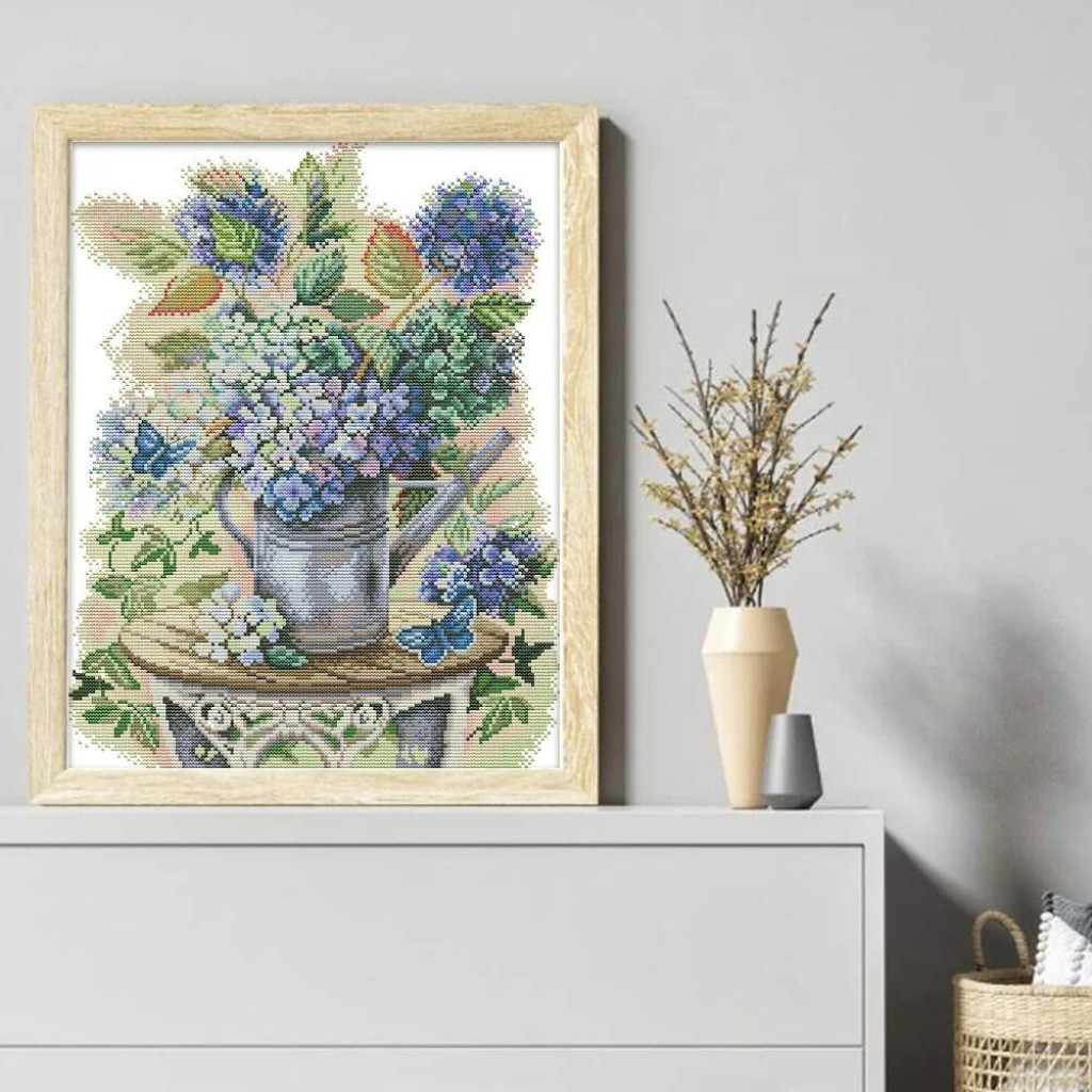HA286JS Joy Sunday Набір для вишивки друкованим хрестиком - Гортензії та метелики 35x42 см, Aida 14 ct (схема на канві)