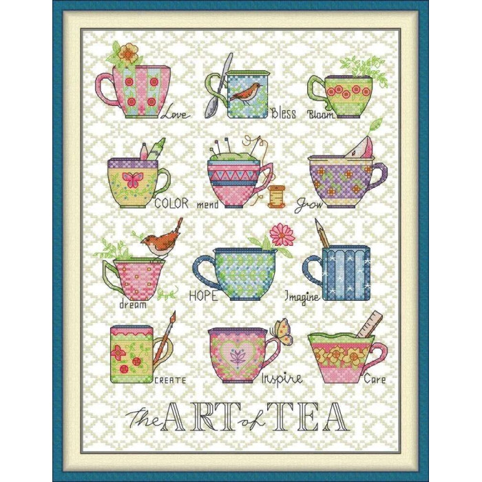 J948JS Joy Sunday Набір для вишивки друкованим хрестиком - Чайні чашки 30x38 см, Aida 14 ct (схема на канві)