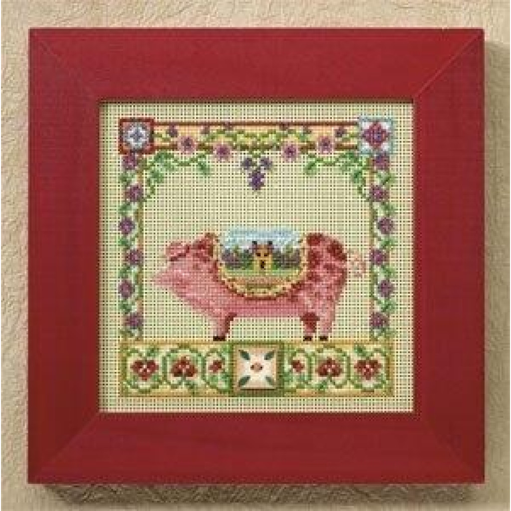 JS148503 Mill Hill Набір для вишивки рахунковим хрестиком + бісером - Свиня Персі Percy Pig 13x13 см, перфорований папір
