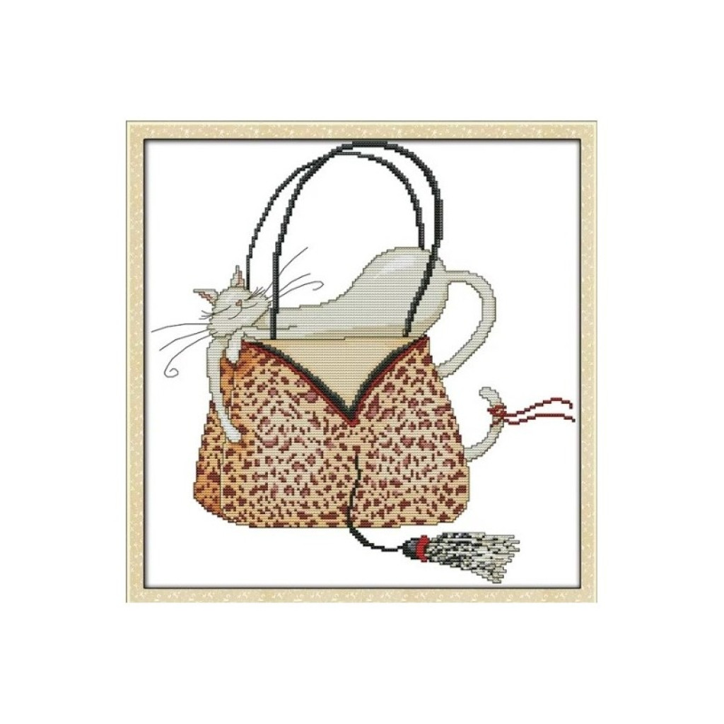 K485-1JS Кіця в сумочці, 37х38 см. Joy Sunday. Набір для вишивки хрестиком на канві з нанесеним малюнком