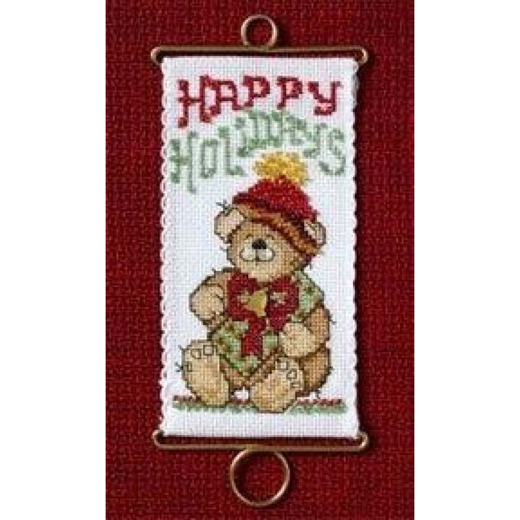 MH126303 Mill Hill Набір для вишивки рахунковим хрестиком + бісером - Веселих Свят Happy Holidays Bear 16x8 см, Aida16