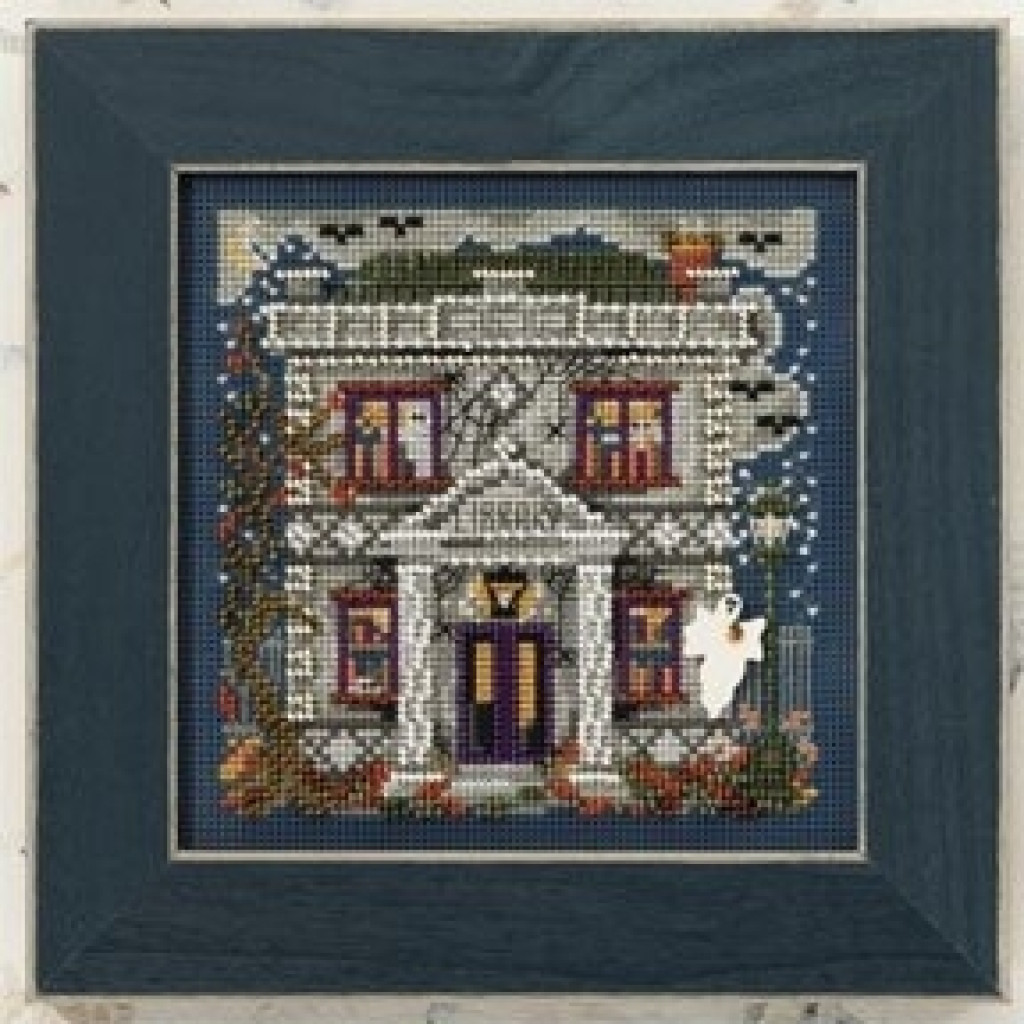 MH140201 Mill Hill Набір для вишивки рахунковим хрестиком + бісером - Примарна бібліотека Haunted Library 13x13 см, перфорований папір