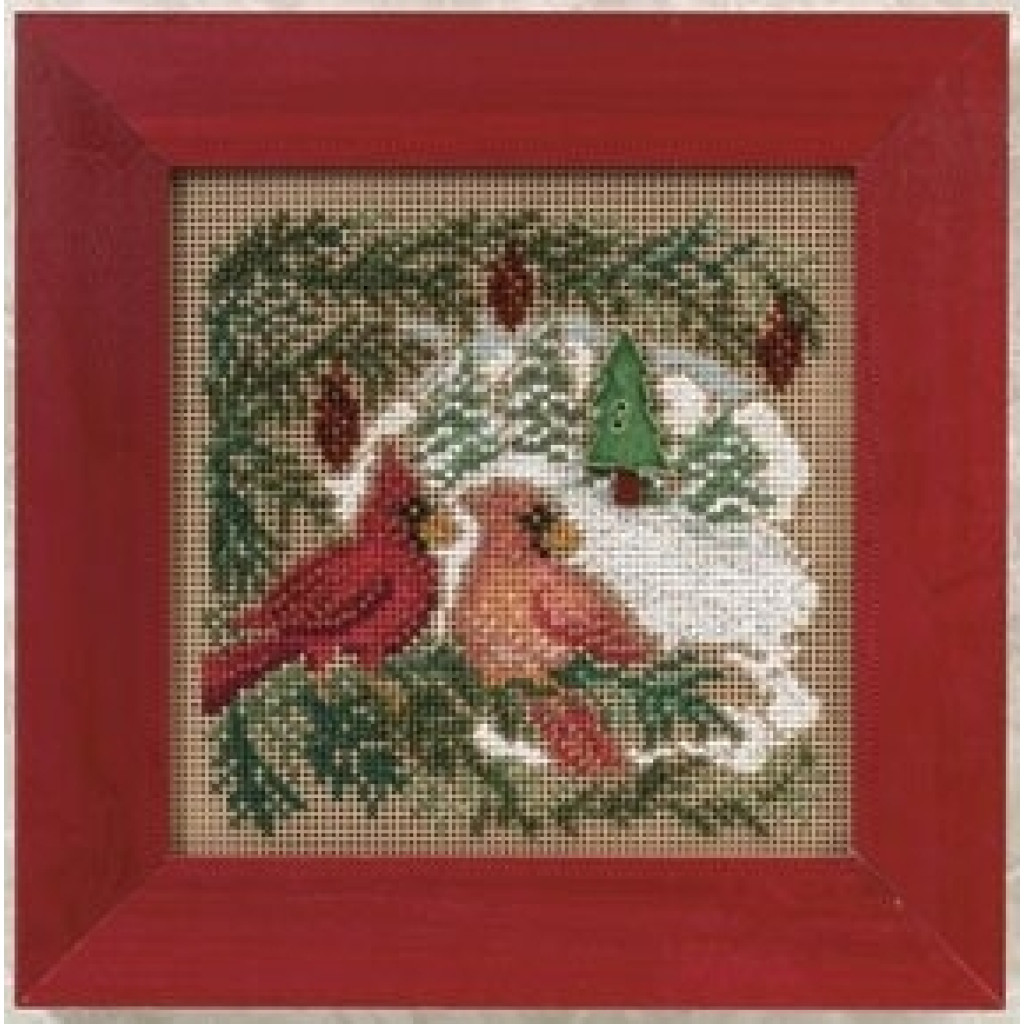 MH140301 Mill Hill Набір для вишивки рахунковим хрестиком + бісером - Кардинали у лісі Cardinal Forest 13x13 см, перфорований папір
