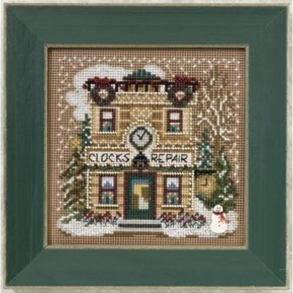 MH140302 Mill Hill Набір для вишивки рахунковим хрестиком + бісером - Магазин годинників Clock Shoppe 13x13 см, перфорований папір