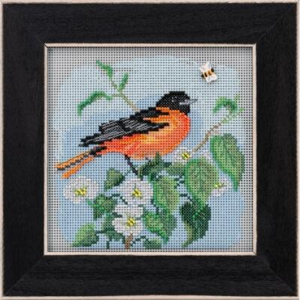 MH142012 Mill Hill Набір для вишивки рахунковим хрестиком + бісером - Іволга Балтімора Baltimore Oriole 13x13 см, перфорований папір