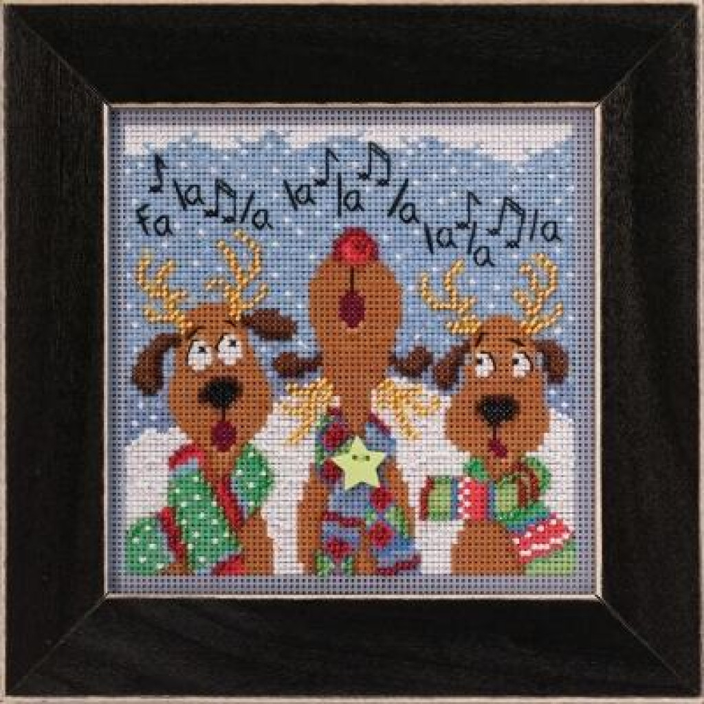 MH142036 Mill Hill Набір для вишивки рахунковим хрестиком + бісером - Хор оленів Reindeer Chorus 13x13 см, перфорований папір