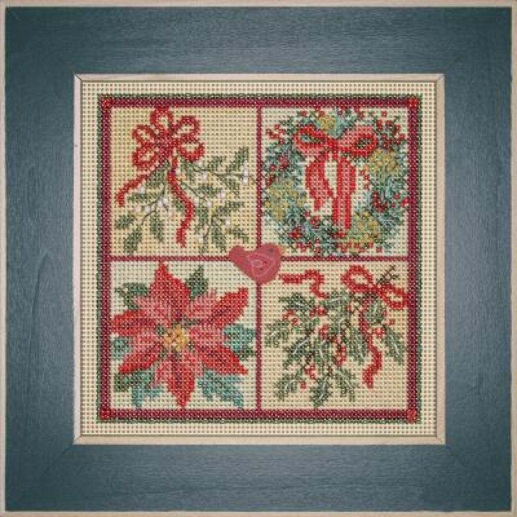 MH142333 Mill Hill Набір для вишивки рахунковим хрестиком + бісером - Зимова зелень Winter Greens 13x13 см, перфорований папір