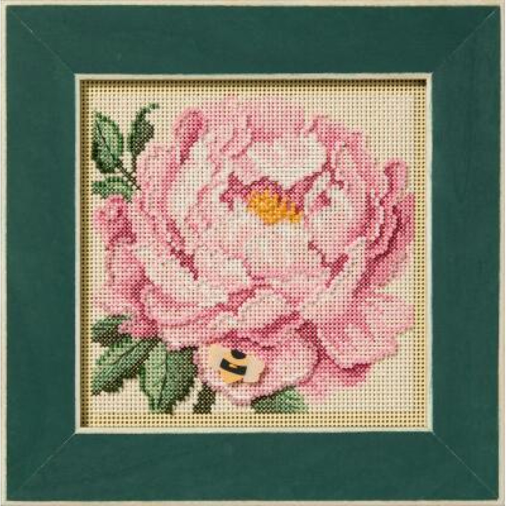 MH142511 Mill Hill Набір для вишивки рахунковим хрестиком + бісером - Півонія Peony 13x13 см, перфорований папір