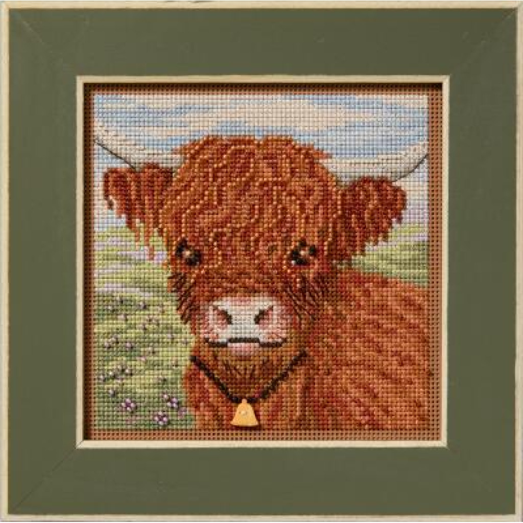 MH142512 Mill Hill Набір для вишивки рахунковим хрестиком + бісером - Високогірна корова Highland Cow 13x13 см, перфорований папір