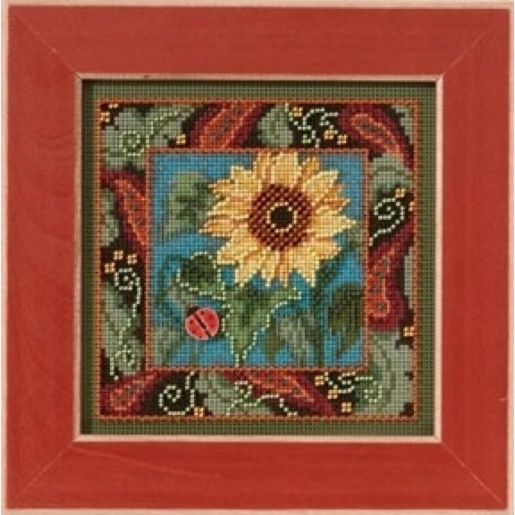MH143201 Mill Hill Набір для вишивки рахунковим хрестиком + бісером - Соняшник Sunflower 13x13 см, перфорований папір