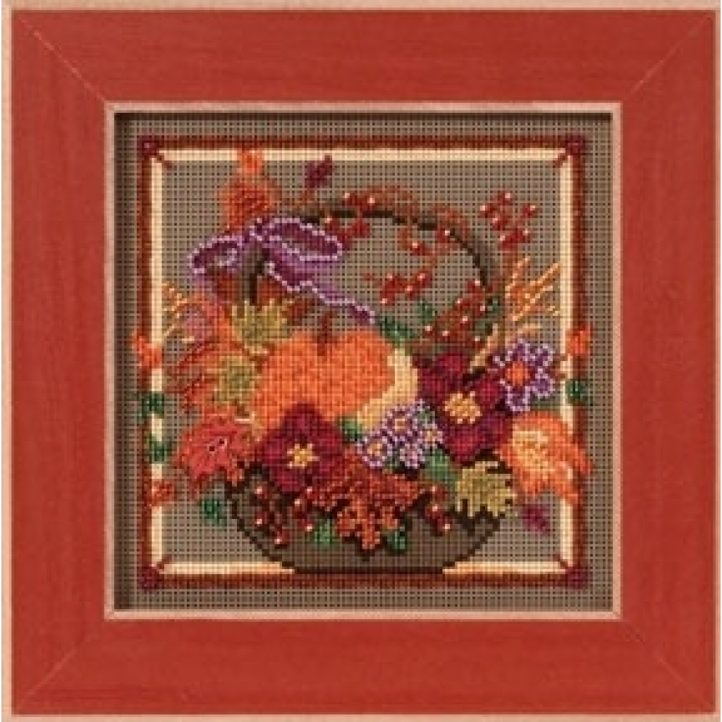 MH143203 Mill Hill Набір для вишивки рахунковим хрестиком + бісером - Осінній кошик Autumn Basket 13x13 см, перфорований папір