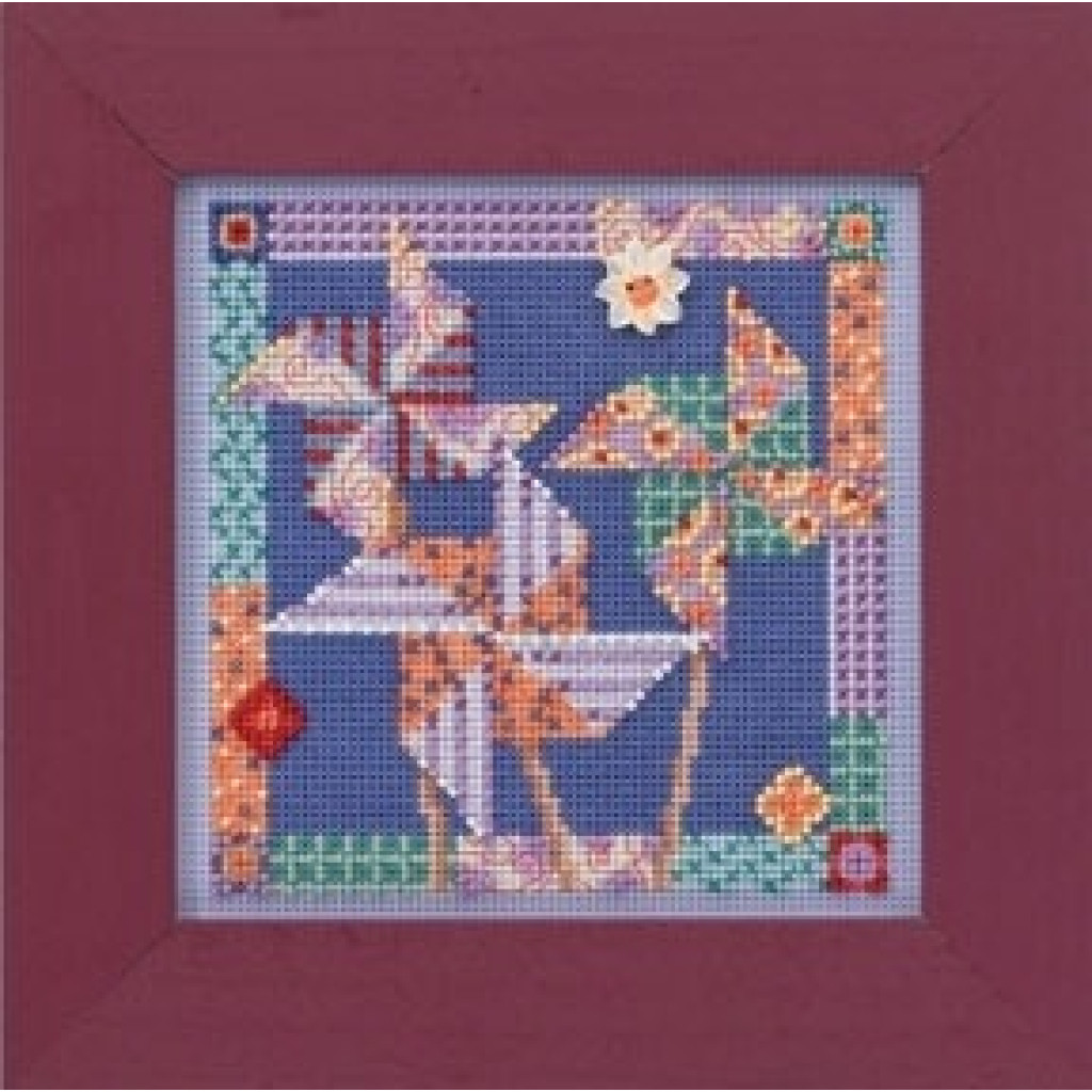 MH144102 Mill Hill Набір для вишивки рахунковим хрестиком + бісером - Квіткове колесо Pinwheels 13x13 см, перфорований папір