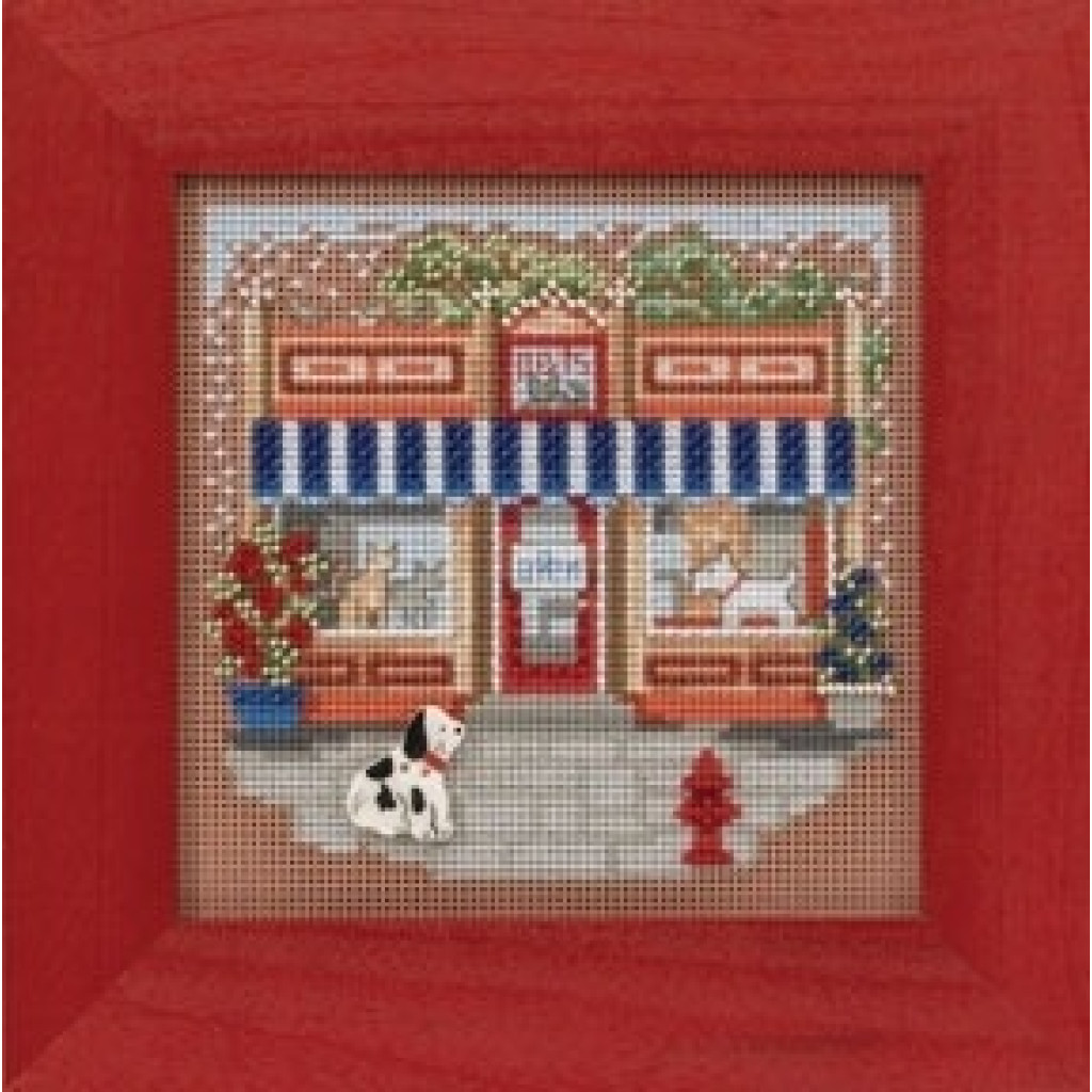 MH144103 Mill Hill Набір для вишивки рахунковим хрестиком + бісером - Зоомагазин Pet Shoppe 13x13 см, перфорований папір
