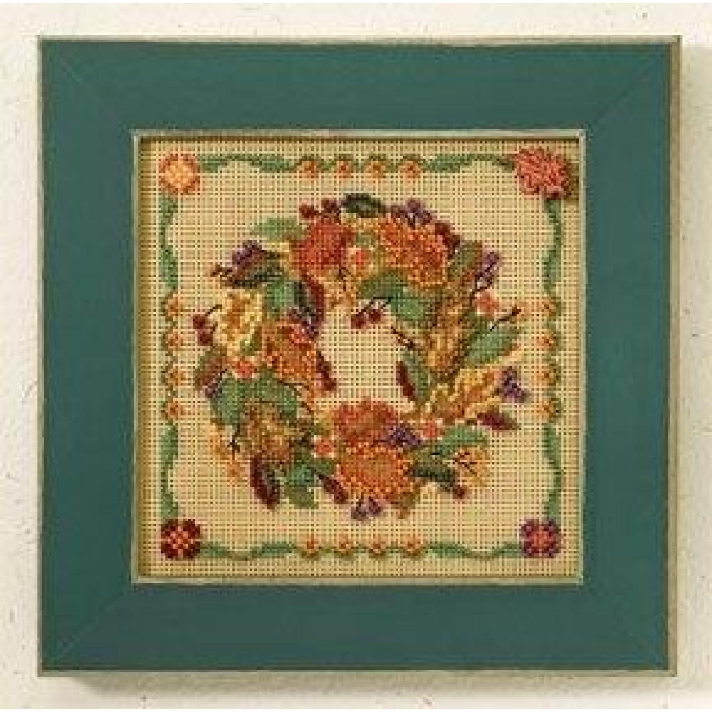 MH147205 Mill Hill Набір для вишивки рахунковим хрестиком + бісером - Осінній вінок Autumn Wreath 13x13 см, перфорований папір