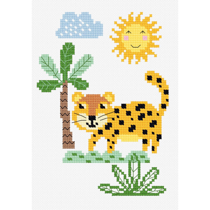 N1348 Чарівниця Набір для вишивки друкованим хрестиком - Маленький леопард призначений для вишивки на канві з нанесеним малюнком, що допомагає швидко орієнтуватися у дизайні та рівно виконувати стібки. Нитки муліне Madeira зі 100% бавовни забезпечують охайний вигляд вишивки, а кольорова схема додає зручності під час роботи та контролю деталей.