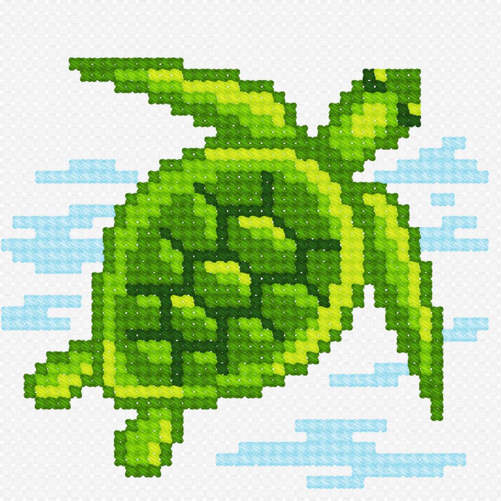 N985 Чарівниця Набір для вишивки рахунковим хрестиком - Морська черепаха 9x9 см, Aida 14