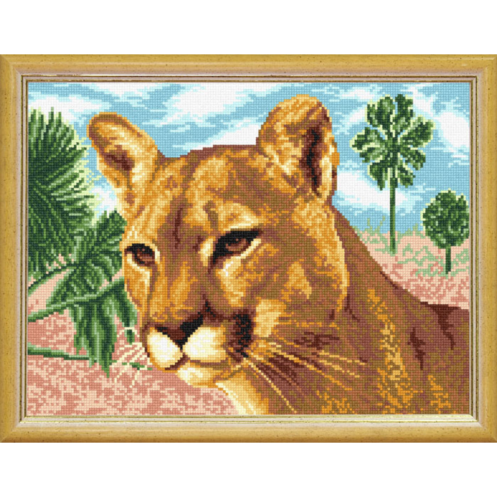 NJ18 Чарівниця Набір для вишивки друкованим хрестиком - Левиця 30x40 см (схема на канві)