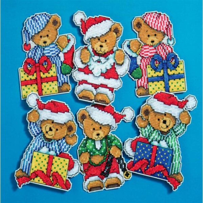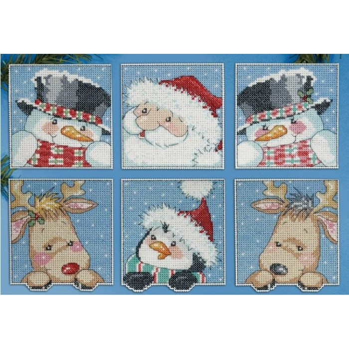 1695 Design Works Набір для вишивки рахунковим хрестиком - Різдвяні корови 8x9 см, пластикова Aida14